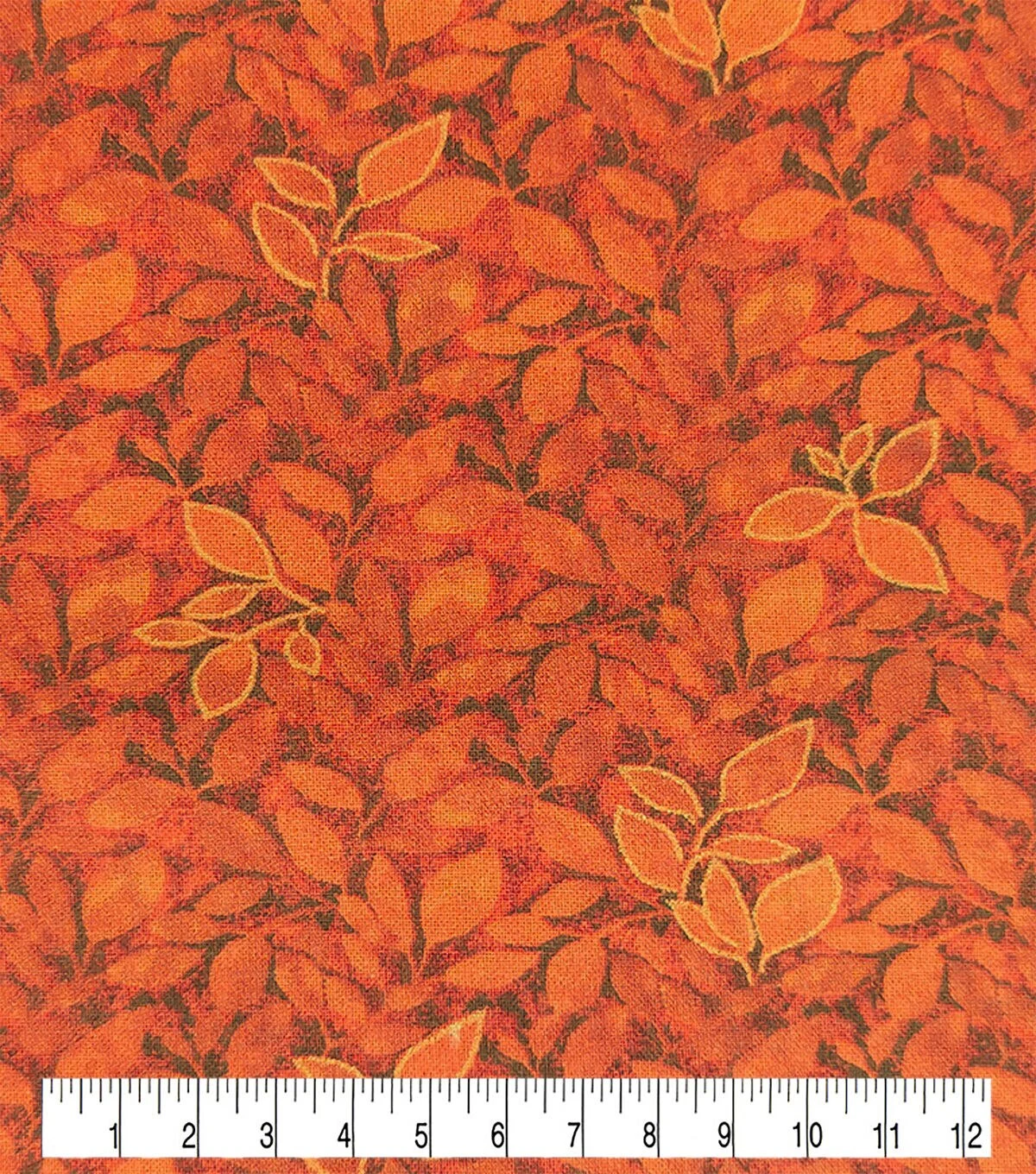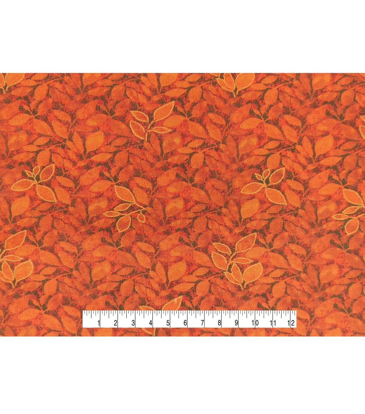 Bring the Beauty of Fall into Your Home with Copper Orange Leaves Fall Print Metallic Cotton Fabric