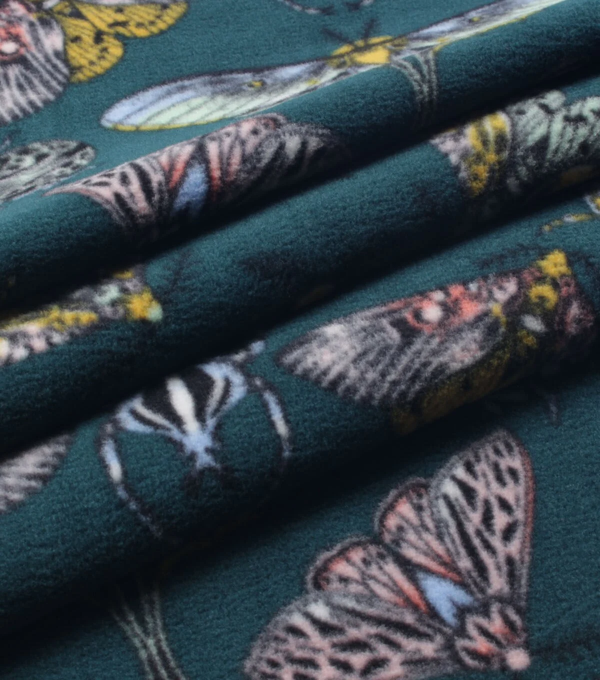 Experience the Softness and Comfort of Moths on Green Anti Pill Plush Fleece Fabric