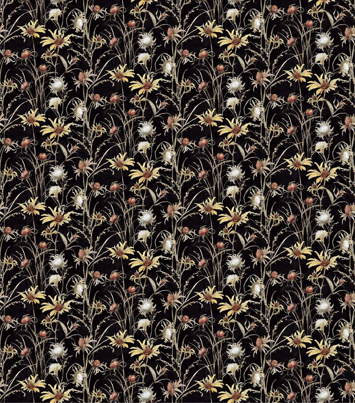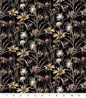 Goldfinch Thistle on Black Premium Cotton Fabric