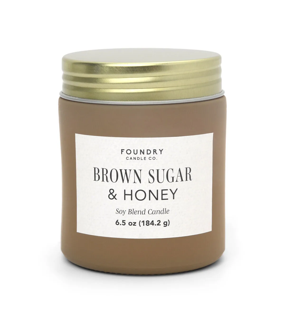 Foundry 6.5oz Frosted Scented Jar Candle With Gold Lid