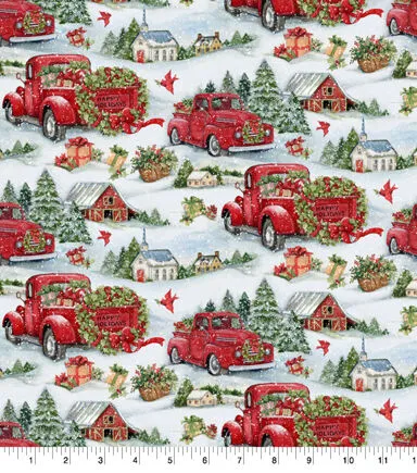 Springs Creative Wreath Barn Christmas Cotton Fabric