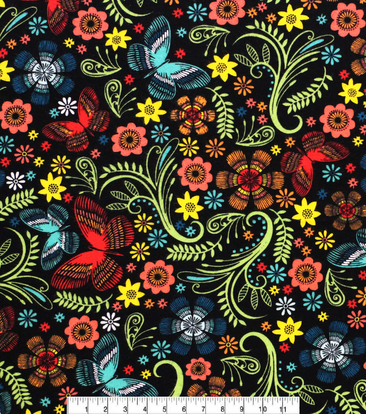 Butterflies on White Cotton Fabric by Quilter's Showcase