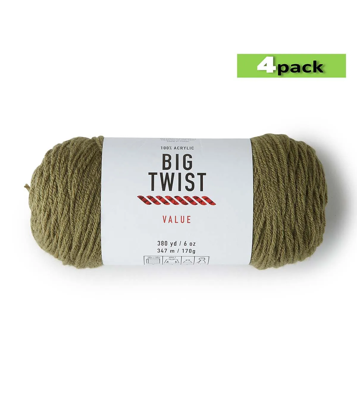 4pk Solid Olive Drab Medium Weight Acrylic 380yd Value Yarn by Big Twist