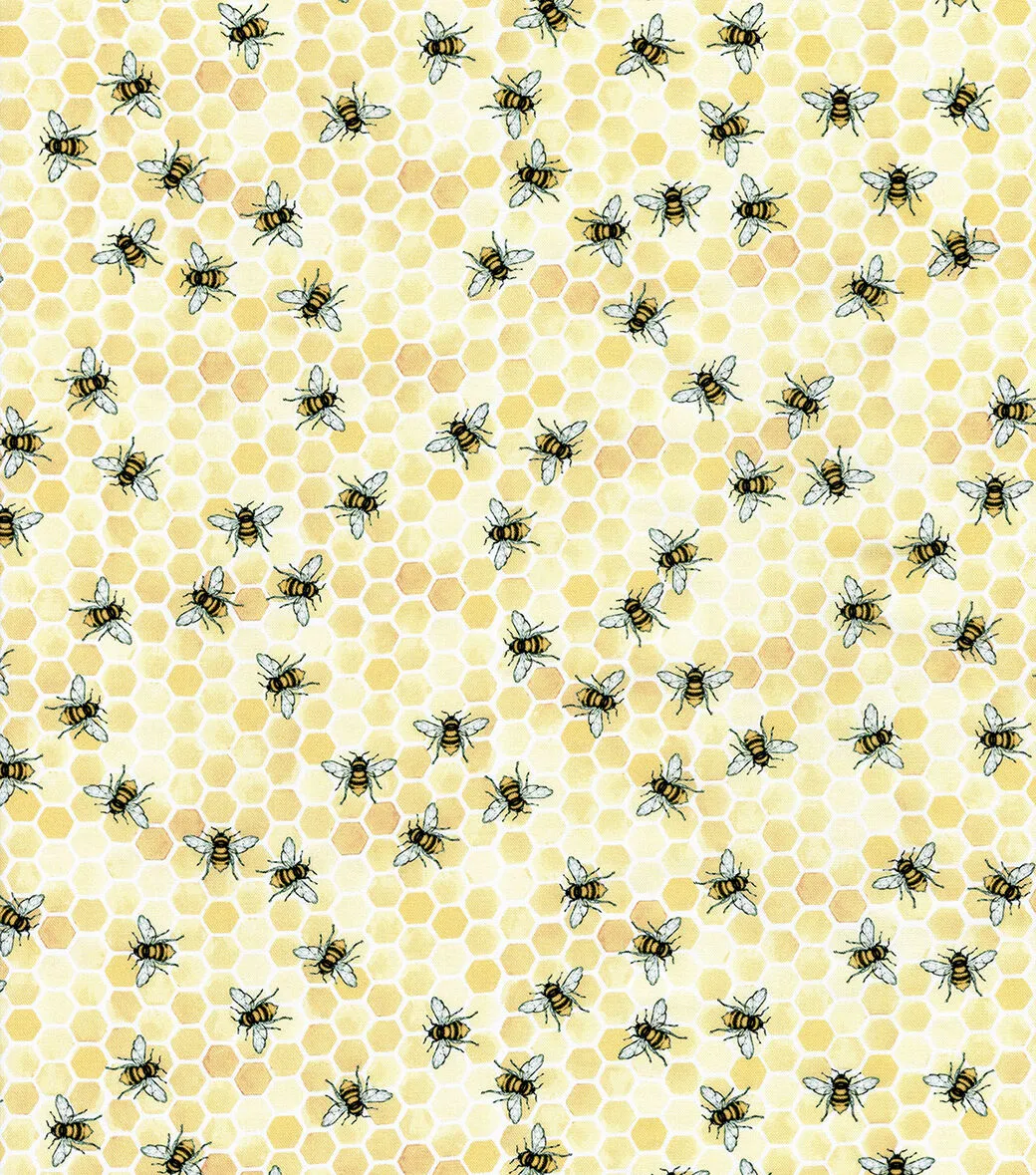 Yellow Sunny Bee on Honeycomb Premium Cotton Fabric
