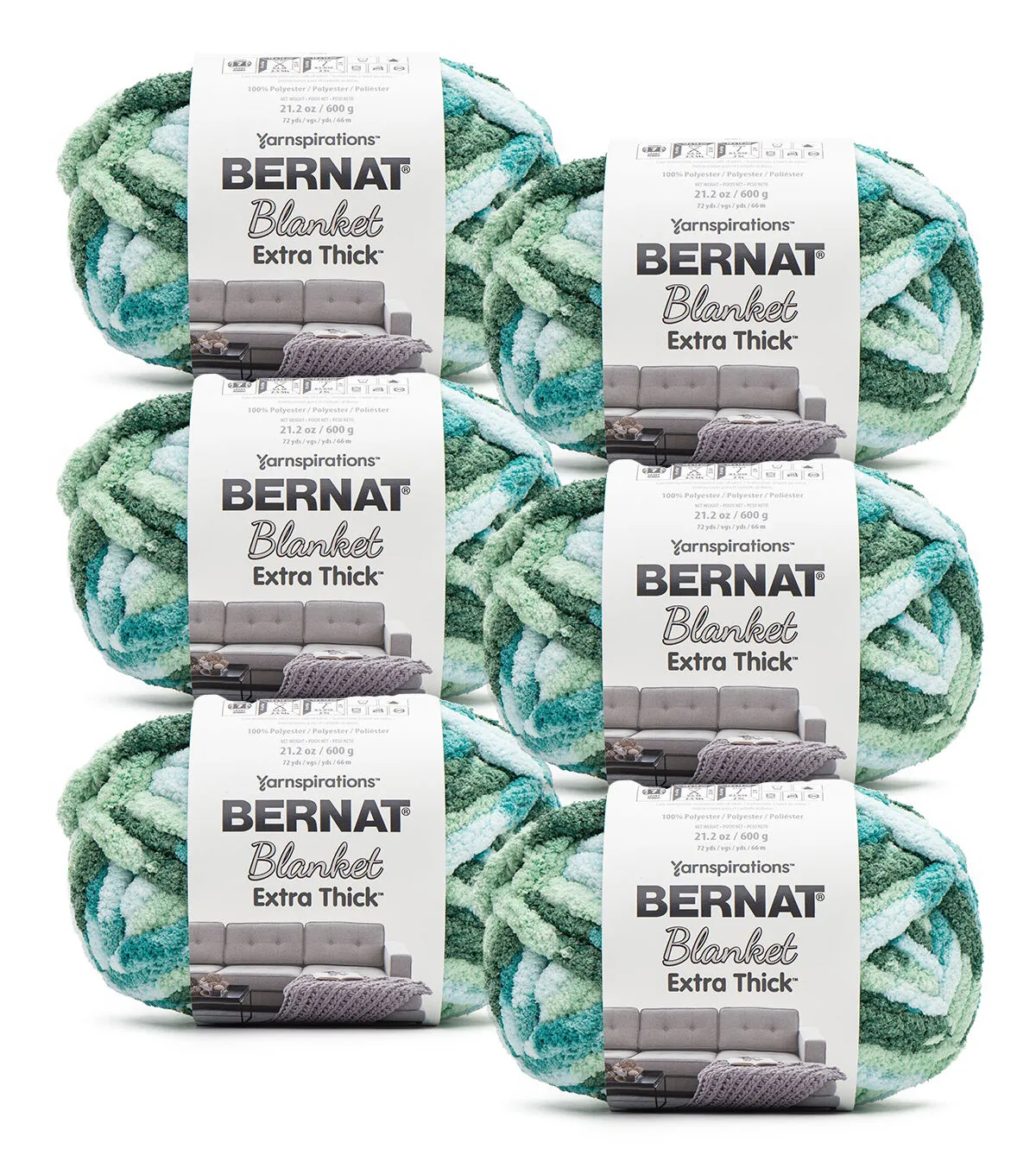 Extra Extra! Bernat Extra Thick yarn gets your project from start to finish extra fast. Your favorite chenille-style Bernat Blanket yarn now has even more to love. The jumbo weight comes in a generously sized ball so each one goes a long, long way. Use Bernat Blanket Extra Thick to stitch up washable, squishable, comfortable projects that are done before you know it.