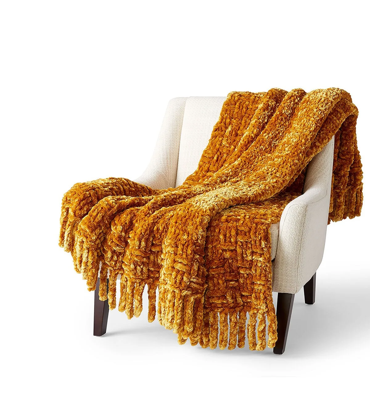 Introducing the next evolution to the Bernat Velvet Family "C Bernat Velvet Plus. With the same beautiful velvety texture and shine as the original Bernat Velvet, Bernat Velvet Plus has a super bulky gauge, allowing you to stitch up luxurious afghans and pillows quicker than ever before. This 100% polyester yarn is ultra-soft, plush, and available in gorgeous jewel tones and neutrals. Projects made with Bernat Velvet Plus are sure to be the perfect accent in any home.