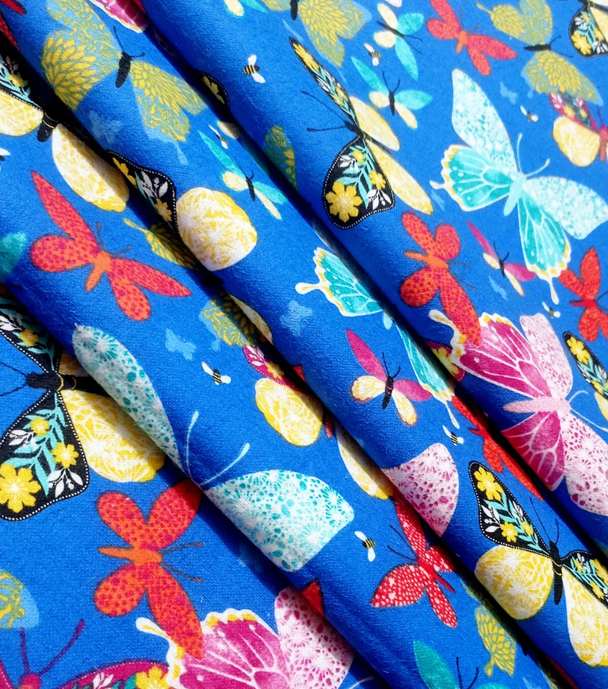 Get Cozy with Butterflies on Blue Super Snuggle Flannel Fabric