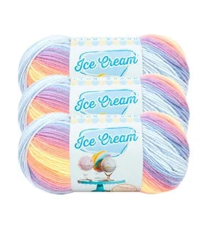 Knit cozy winter wear or baby apparel and accessories with the Lion Brand Ice Cream Yarn. This lightweight yarn is made of 100% acrylic and machine washable. Use this soft self-striping acrylic yarn to knit or crochet baby sweaters, hats, blankets, gloves, socks, scarves, booties and more. The yarn is available in a range of other soothing colors for you to choose from.