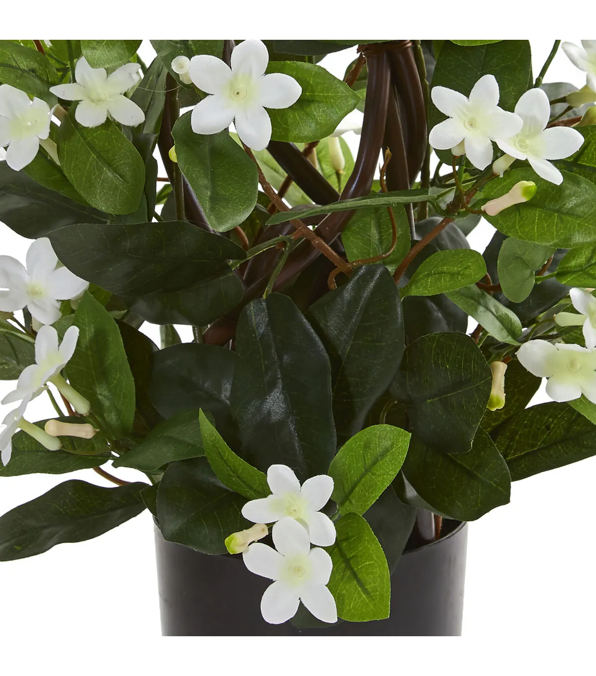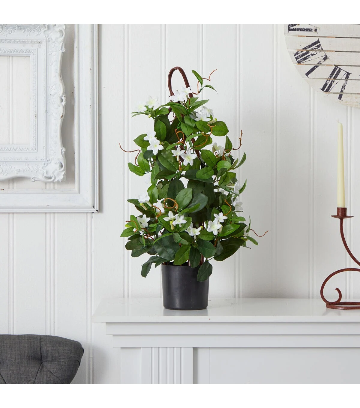 Brilliant blossoms highlight the lush leaves of this stephanotis artificial climbing plant. Standing at 24 inches tall, this realistic ornament makes a beautiful addition to a work desk or kitchen island. If you prefer to place it on your kitchen island, accent it with a canister set and a bowl of fruit for a full, natural setup.