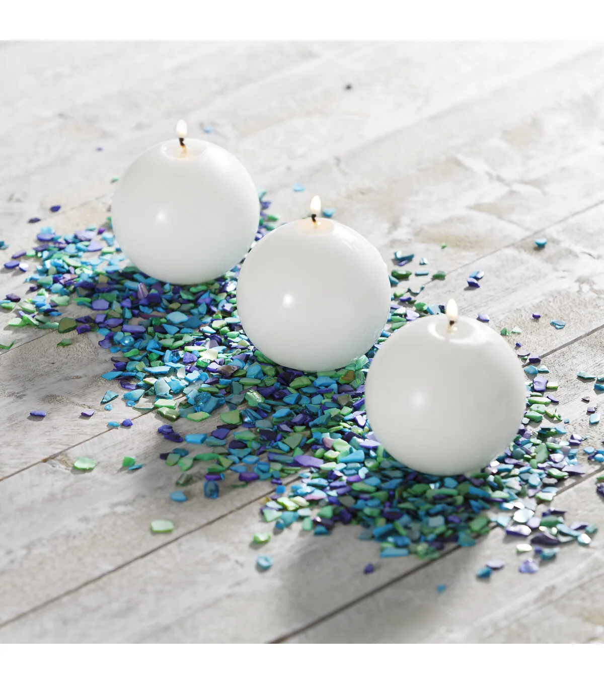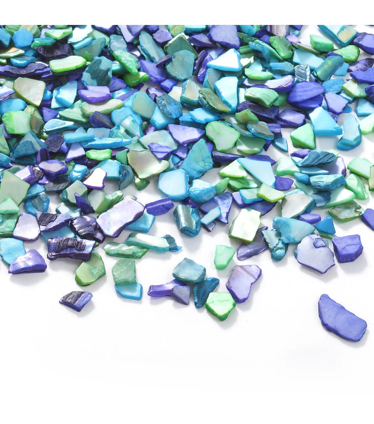 The Bloom Room Crushed Shells - Peacock will add a lively look to your home decor. This pack contains 2 pounds of crushed sea shells perfect to liven up a potted plant, or use as vase fillers, in terrariums, fairy gardens and more. These crushed shells flaunt peacock colors and are ready for your next craft project. They are perfect for a beach or nautical-themed party or shell crafts. You can use them to add a gleaming, reflective dimension when placed in candle arrangements, inside water centerpieces or scattered around tables.