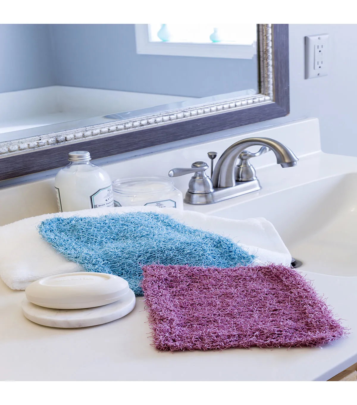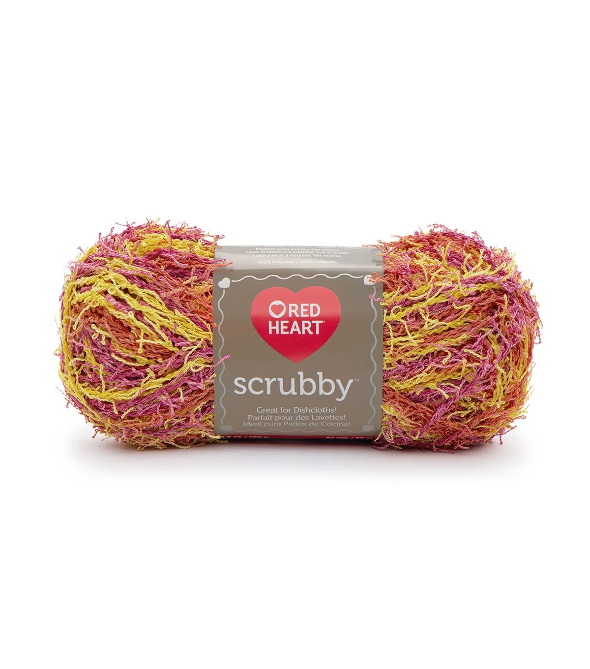 Just like its name implies, this uniquely textured yarn is great for knit or crochet dishcloths! Scrubby cloths clean dirty pots easier than cotton yarn dishcloths. Since Scrubby is polyester, it will dry a lot quicker! It exfoliates as well, so you can use it for washcloths.