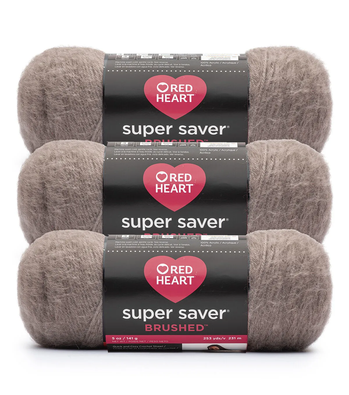 Red Heart Super Saver Brushed has a soft, glowing halo. The brushed acrylic yarn stitches up to create a soft and fuzzy fabric that takes cozy to the next level. Ideal for cuddly wraps, shawls and accessories, Super Saver Brushed creates a fabric with a soft and feathery texture. The worsted weight is suited for projects of all kinds from garments to home decor pieces.