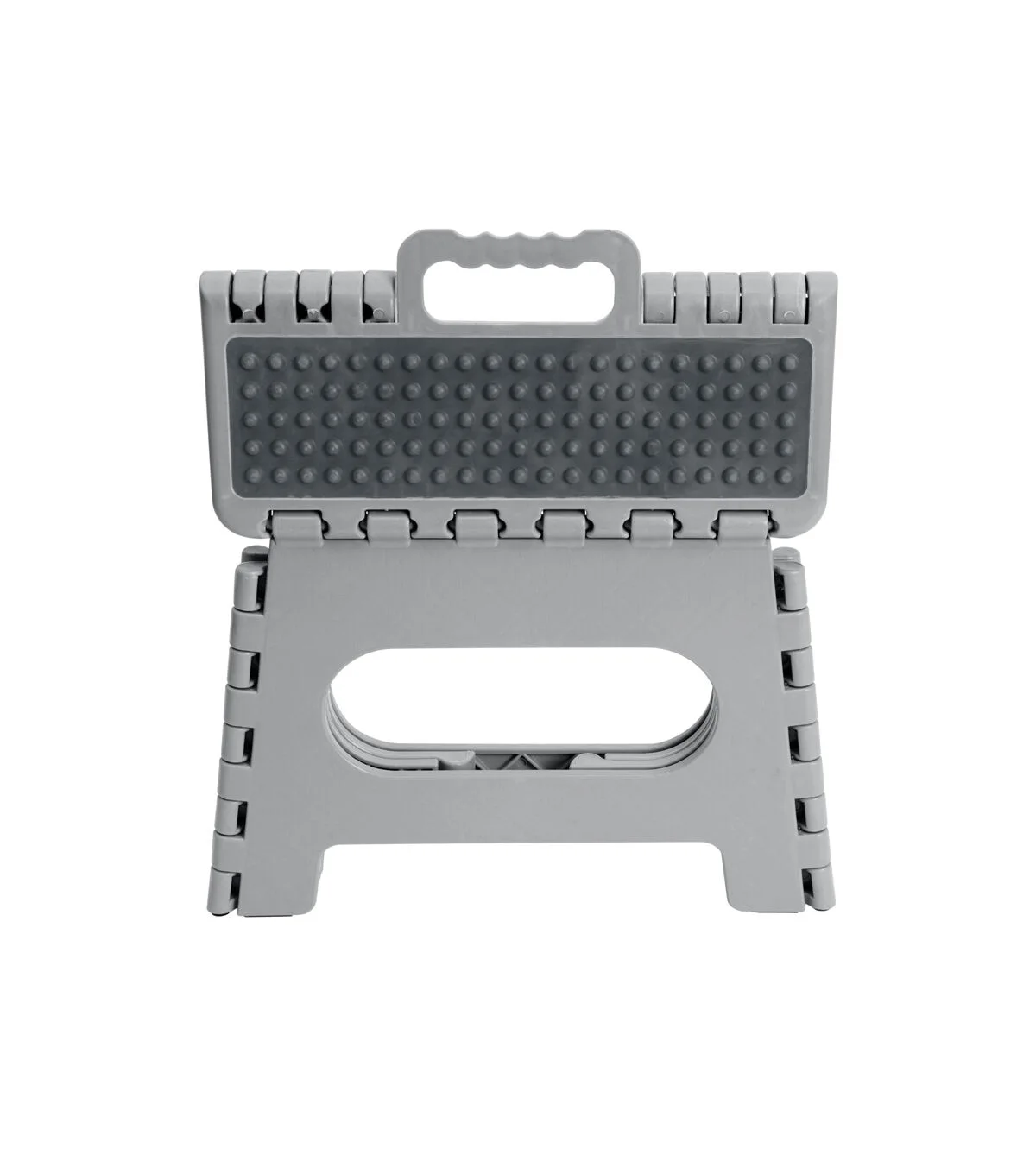 A must have in any home, dorm or office, the Simplify Folding Step Stool. With an easy carry handle you can conveniently transport the stool to any room in the household. With the 9 inch height and weight capacity up to 200lbs, this stool can hold children and adults. The anti-skid foot pads keeps this item safe to use. When not in use the stool easily folds away for storage.