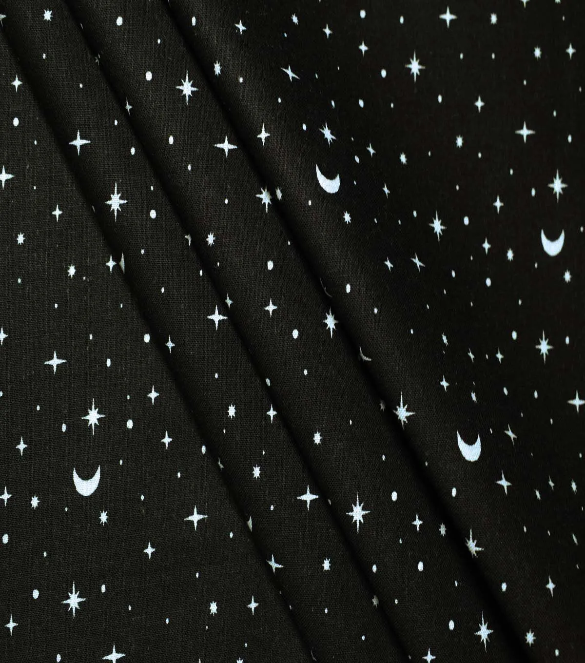 Explore the Night Sky with Stars & Moons on Black Cotton Fabric by Quilter's Showcase