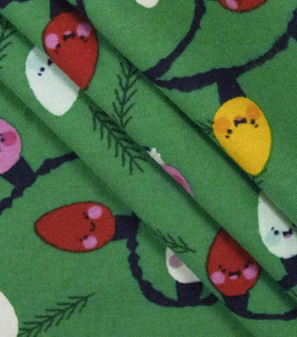 String Lights on Green Super Snuggle Christmas Flannel Fabric by POP!