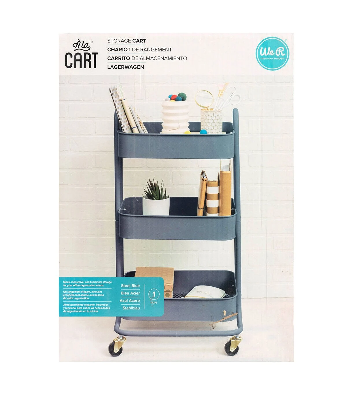 The choice is yours with A La Cart by We R Memory Keepers! This sturdy crafting cart is the perfect addition to your creative space. It features multi-directional wheels for easy transportation and movement, three convenient storage and work shelves.